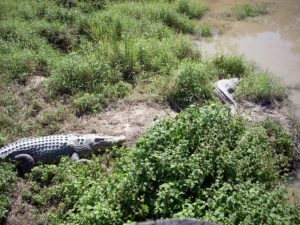 I saw a Mama Crocodile sunning its leathery armored skin while we tourists cruised along on a boat. We also saw two baby crocs.